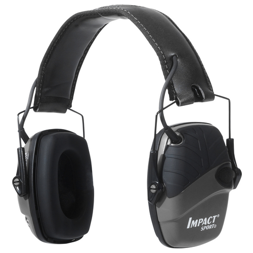 The Impact Sport Electronic Earmuff are made for guarding the user against damaging decibels and keeps you in touch with your surroundings. Comes with built-in directional microphones and air flow control technology. The microphones amplify ambient sounds to a safe 82dB so you will hear important commands on the range and crucial environmental sounds. When a loud sound - like a firearm discharge - that exceed 82dB the amplification automatically stops and you're protected.