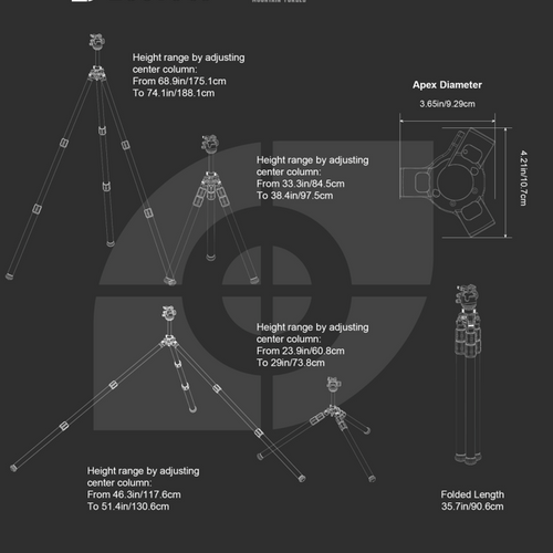 Equipped with the Leofoto Tripod Lock has a pull-down locking mechanism to keep the legs securely spread and prevents slippage. The hollow design allows compatibility with a center column for spotting use. It features the LN Rubber Twist Locks that enables a fast, smooth, and reliable deployment even under a heavy load. It also has the upgraded LQ Urban Apex that delivers the structural strength required to support ultra-thick legs while preserving the apex's quick-swap capability and compact footprint.